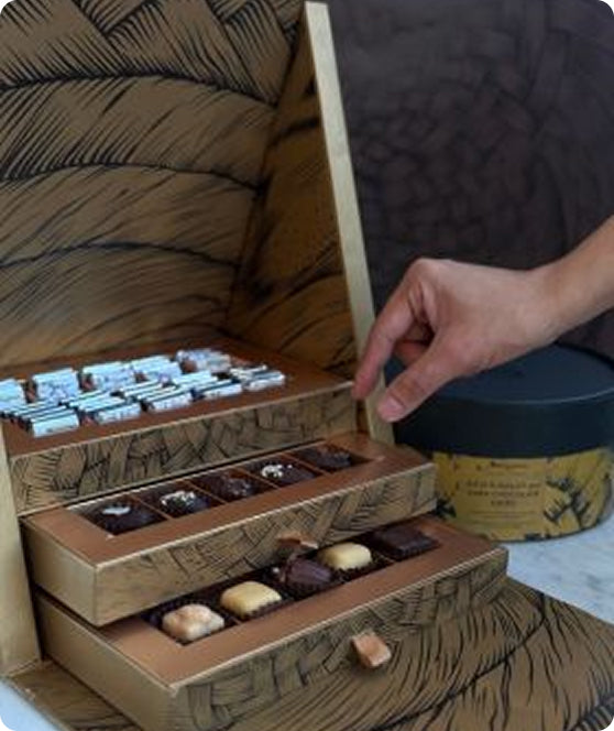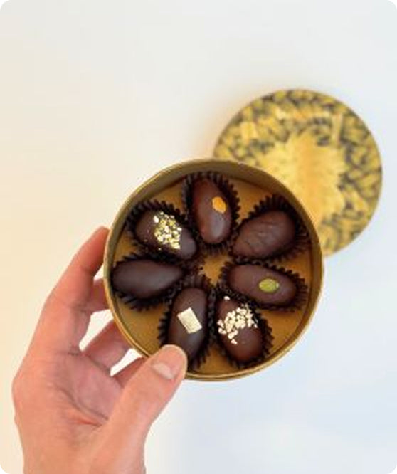 We offer a variety of gifts across different price brackets — from our mini bars and praline-filled truffles, to chocolate-covered dates and luxury gift hampers. Whether you’re looking for elegant gestures or grand statements, our team can help curate the perfect selection to match your occasion and budget.